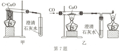 7. (2025·山西大学附属中学校段考)木炭和一氧化碳还原氧化铜的实验装置分别如图甲和图乙所示,下列说法错误的是(