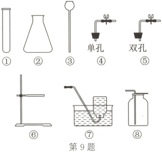 9. (2024·日照)某探究小组欲在实验室制备氧气和二氧化碳,实验桌上有下图仪器和乳胶管、棉花、火柴以及实验所需试剂。