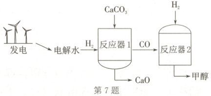 7. (2025·吕梁兴县段考)电解水制氢联合碳酸钙分解制备氧化钙能减少碳排放,助力“碳中和”。该方法的示意图如图所示。