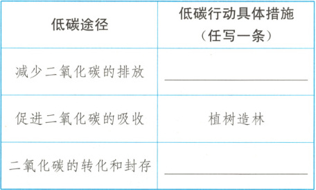 (6) 通过该项目的探究,小组同学对低碳行动有了新的认识,请将表格补充完整。