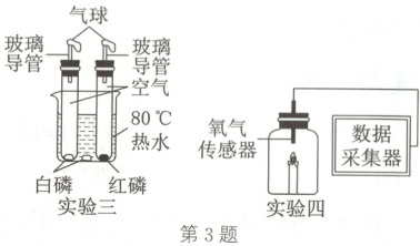 C.实验三:水中的白磷不燃烧而试管中的白磷燃烧,说明燃烧需要与氧气(空气)接触