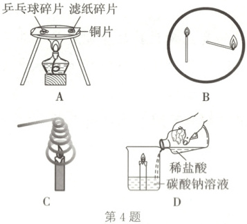 4. 据图判断下列关于燃烧和灭火的解释错误的是(