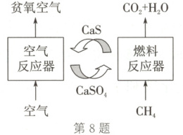 8. (科技民生)“化学链燃烧”技术是能源领域研究的热点之一。基于CaSO₄载氧体的“化学链燃烧”过程如图所示,相比于直接燃烧甲烷,对该技术的评价错误的是(