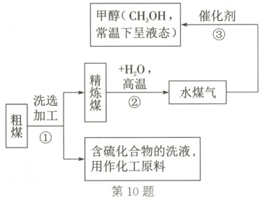 10. 淮南是产煤大市,将煤进行气化、液化变成清洁能源对环境保护起重要作用。煤气化和液化示意图如图所示: