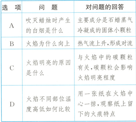 11. 拉瓦锡曾以《蜡烛的故事》为题为青少年连续开展了多次报告。下列列举了报告中涉及的问题及对问题的回答,其中“对问题的回答”属于“设计实验方案”的是(