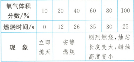 的蜡烛在集气瓶中的燃烧时间如表3所示。表3