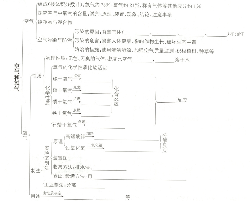 二氧化硫 二氧化氮 一氧化碳 臭氧 略大 不易 二氧化碳+水 锰酸钾+二氧化锰+氧气 水+氧气 向上排空气法 带火星的木条分别插入瓶中和放在瓶口看是否复燃 液态空气法 供给呼吸 支持燃烧