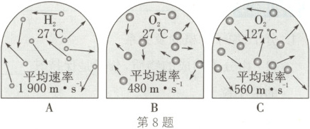 8. 如图是氢分子(H₂)和氧分子(O₂)运动的示意图。