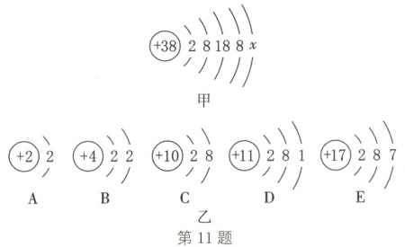 (2) 如图乙所示的粒子中,与锶化学性质相似的是