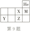 9. 元素周期表是学习和研究化学的重要工具。如图是元素周期表的一部分,X、Y、Z、M分别代表四种不同的元素。下列说法正确的是(