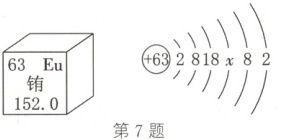 7. 铕是一种稀土元素,可用作电视屏幕的荧光粉。如图为铕元素在元素周期表中的部分信息及原子结构示意图。下列说法正确的是(