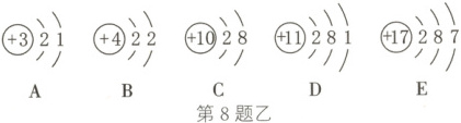 8. 如图甲是某两种元素的原子结构示意图: