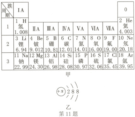 11. 元素周期表是学习和研究化学的重要工具,请根据如图信息回答有关问题。