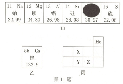 11. 元素周期表是学习和研究化学的重要工具。请根据图示回答下列问题: