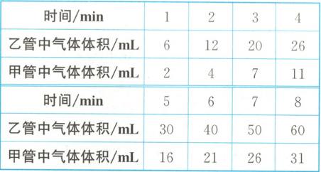 (1)用精密电解水设备电解水,同时测定两管中产生气体的体积,记录在下表中: