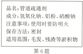 6. 某管道疏通剂标签上的部分文字如图所示。下列说法正确的是(