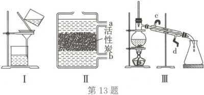 13. 化学兴趣小组在河边收集到一瓶浑浊的河水,在实验室模拟自来水厂的净水过程,最终制取蒸馏水,操作过程如图所示。下列有关说法中,正确的是(