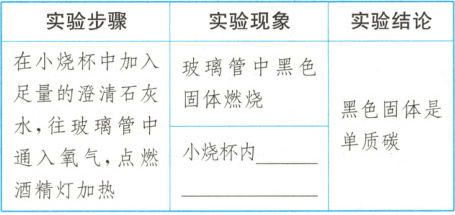 (7)实验结论为黑色固体是单质碳,单质碳在氧气中燃烧生成二氧化碳,二氧化碳能使澄清石灰水变浑浊,故小烧杯内澄清石灰水变浑浊。