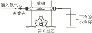 利用如图乙装置对“蔗糖的组成”进行探究。实验开始先通入一会儿氮气,然后关闭弹簧夹,点燃酒精灯给蔗糖加热。