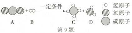 11. (2025·晋中寿阳段考)在反应$3A + 3B\xlongequal{}C + 3D$中,已知68g A与40g B恰好完全反应,生成24g C;若A的相对分子质量为136,则D的相对分子质量为(