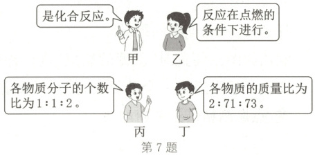 7. 如图,四名同学正在讨论某一个化学方程式的意义,他们所描述的化学方程式是(