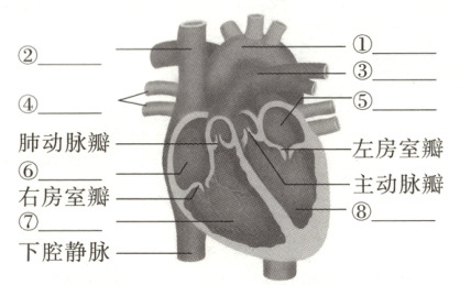 4. ①主动脉 ②上腔静脉 ③肺动脉 ④肺静脉 ⑤左心房 ⑥右心房 ⑦右心室 ⑧左心室
