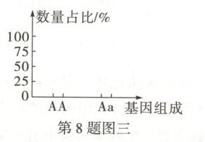 8. (2025 河北 29 题)家中久放的水果周围常能看到果蝇飞舞。生物学实验小组采集果蝇进行培养,观察发现,果蝇幼虫蠕动取食,有些幼虫取食时极为“活跃”,5 分钟内的移动距离是“不活跃”幼虫的 4 倍。小组成员进行了如图一所示的杂交实验。