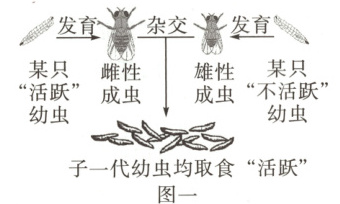。(3)果蝇幼虫取食“活跃”与“不活跃”是一对相对性状。据图一推断,取食“活跃”为