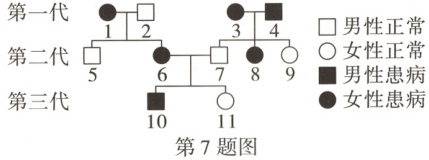 7. (2025 唐山二模)如图为人类某种遗传病的家族遗传系谱图,基因用 D、d 表示。据图分析,下列说法正确的是 (