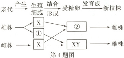 4. (2025 石家庄一模改编)银杏是古老的孑遗植物,其性别遗传如图所示。下列说法错误的是 (