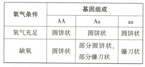 。(2)在不同的氧气条件下,基因组成为 aa 个体的红细胞形态不同。这说明红细胞形态是由基因组成和