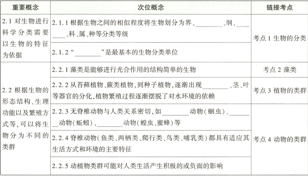 考点1 生物的分类(2024.6)