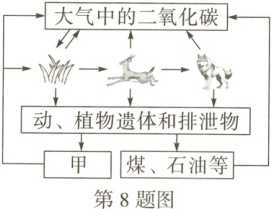 8. 教材新增素材 万唯原创 如图表示草、藏羚羊和狼三者之间的关系以及所处生态系统中二氧化碳的循环过程,下列对该生态系统的分析,不正确的是 (