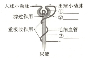 1. ①肾脏 ②输尿管 ③尿道 ④膀胱