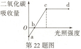 22. 某同学在探究不同光照强度对吊兰生理作用的影响时,记录二氧化碳吸收量的相关数据如图所示。图中能够表示有机物开始积累的点是(
