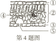 4. (2025 兰州)“苦⽔玫瑰”是兰州市市花。如图为其叶⽚结构⽰意图,下列说法错误的是(