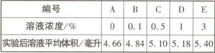 5. (2025 安徽改编)为探究“烧苗”现象产⽣的原因,某学习⼩组从同⼀个新鲜萝⼘的相近位置切取形状、⼤⼩相同的 7 根萝⼘条,分别放到盛有 5 毫升蒸馏⽔和不同浓度⾷盐溶液的试管中,⼀段时间后,取出萝⼘条,测量各试管中液体的体积并记录数据,重复 3 次实验后取平均值,结果如下表。下列分析错误的是(