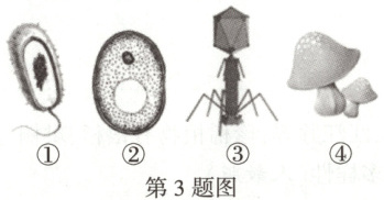 3. (2024 石家庄一模改编)自然界中存在着形形色色的微生物,如图是四种微生物的结构简图。下列说法错误的是(