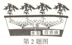 2. (2025 苏州)气雾栽培是利用喷雾装置将营养液雾化后直接喷施到植物根系的一种无土栽培技术,如图所示。根系直接与空气接触,有利于植物的根进行(
