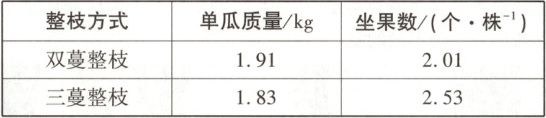 内完成受精。(5)[结果]同学们对不同整枝处理的西瓜结果情况进行了统计。