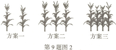 (4)图2表示种植玉米的三种方案,为充分利用土地单位面积上的光照,科学种植玉米应选择方案________。