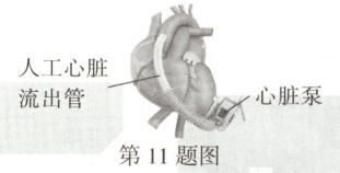11. 心脏发生功能性障碍会导致血液不能充分泵出心脏,目前,我国自主研发的全磁悬浮人工心脏为此类心脏病患者带来希望。如图为全磁悬浮人工心脏安装示意图。下列说法错误的是(