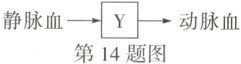 14. 如图表示血液流经人体某结构Y前后的成分变化,则结构Y最可能是(
