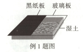 (9)材料用具:玻璃板换为黑纸板,等量的干土实验装置:![img alt=例1]