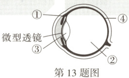 13. 18~45 岁的高度近视患者在经过医疗评估后,可在眼球内(如图)植入一片微型透镜来矫正视力。下列说法正确的是(