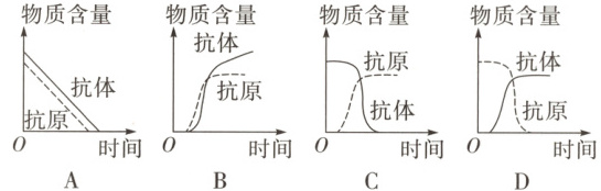 22. 如图是某水痘患者在注射水痘疫苗后,其体内相关物质含量随时间变化的曲线图,其中正确的是(