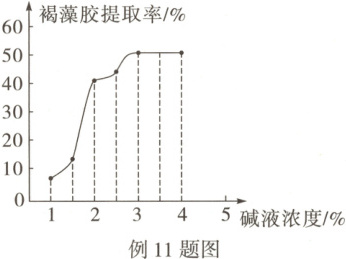 例11 3% 碱液浓度为3%时,褐藻胶提取率高且节约原料