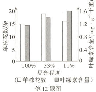 例 12 地被植物通常具有耐阴性。科研人员对二月兰的耐阴性进行了研究,结果如图所示。
