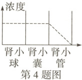 4. (2024 成都)健康人形成尿液的过程中,某物质在肾单位不同部位的浓度变化如图所示。据图推测,该物质可能是(