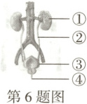 6. (2025 无锡)如图为人体泌尿系统的组成示意图。下列叙述错误的是(
